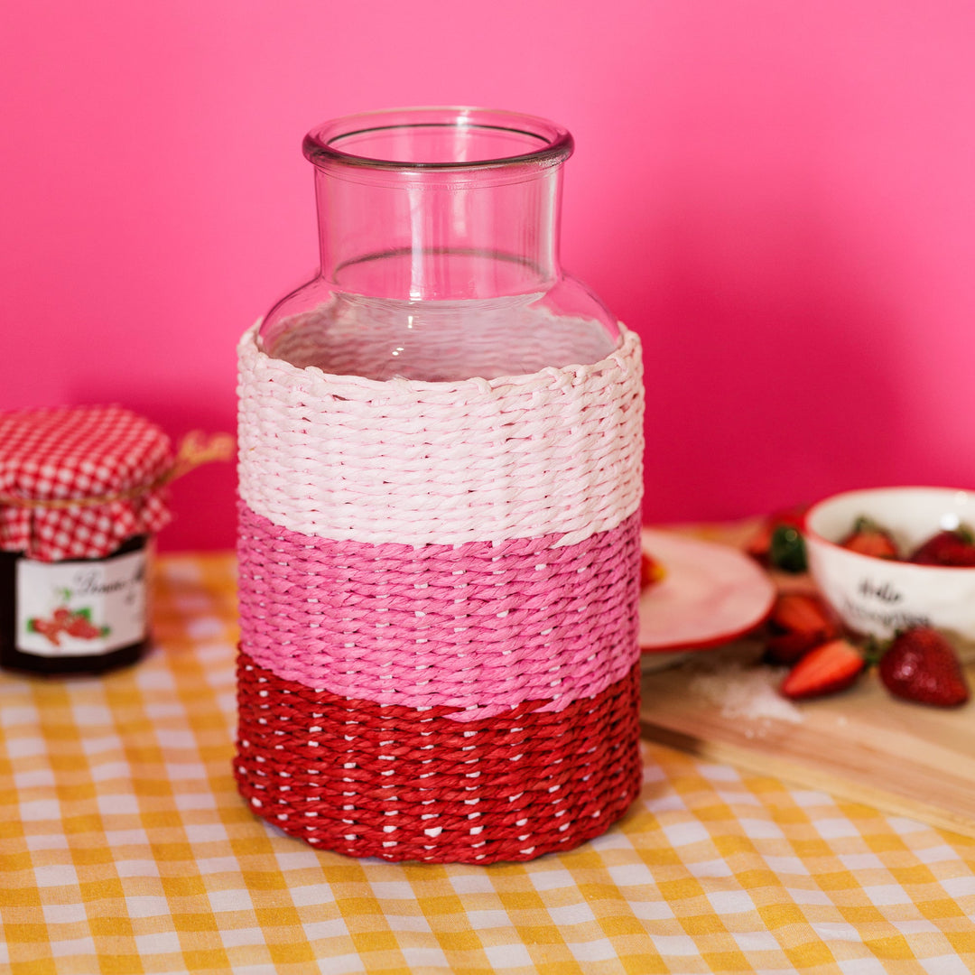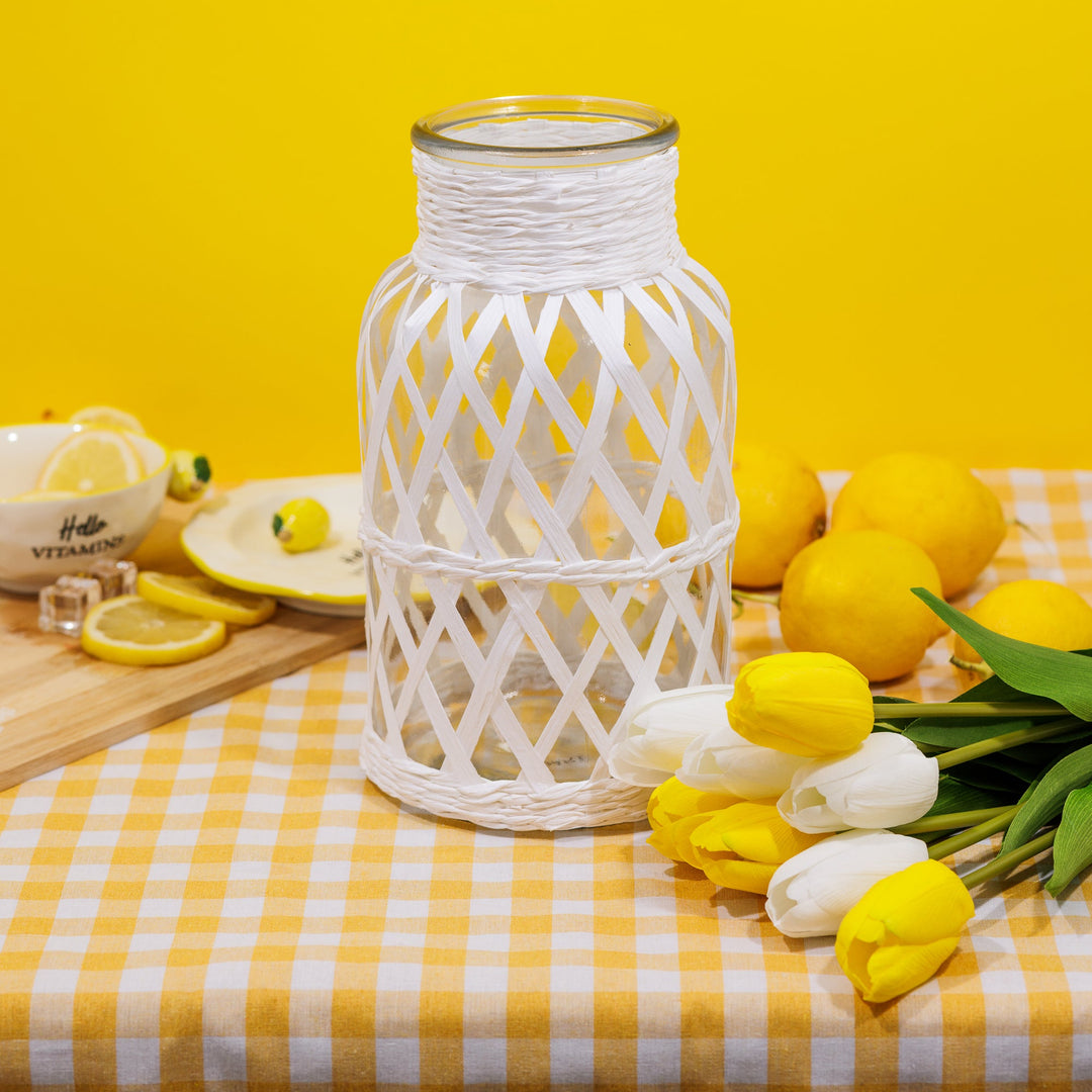 KOART| MORFI.100.26 Γυάλινο Ανθοδοχείο Διακοσμημένο Με Ψάθα