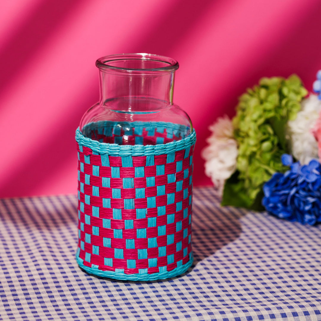 KOART| ZELINA.100.26 Γυάλινο Ανθοδοχείο Διακοσμημένο Με Ψάθα