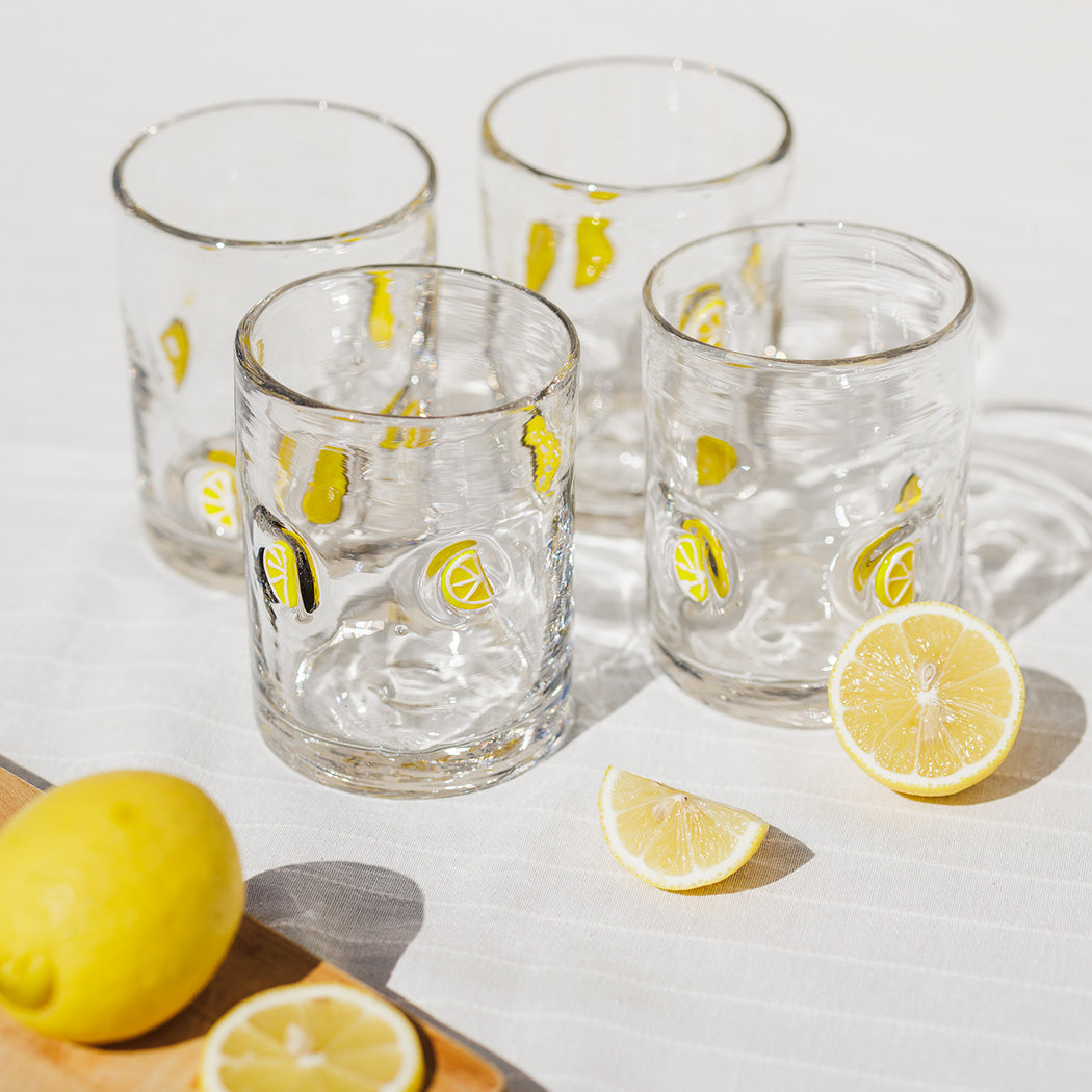 KOART| Limou Σετ 4 Γυάλινα Ποτήρια με Σχέδιο Λεμόνι 420ml